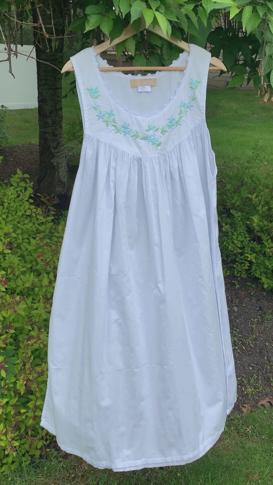 Our bestselling and signature nightgown features intricate hand-stitched embroidery on soft, white cotton batiste. Each nightgown is hand-crafted from start to finish providing ample arm room and two choices of hem a midi length that hits just below the knee to mid-calf or a knee-length option for ultimate comfort.
